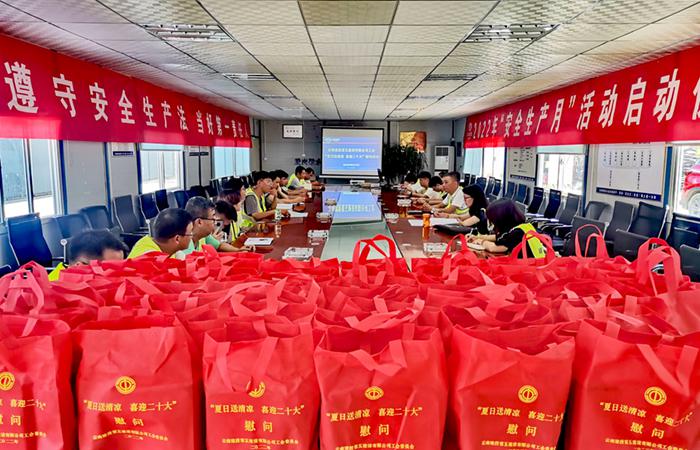 炎炎夏日送清涼,絲絲關(guān)愛(ài)入心田。8月10日,公司工會(huì )主席冷蕊帶隊深入永金高速新平(戛灑)至元江(紅光)段一分部、彌勒至玉溪高速公路勘察試驗段象山段項目開(kāi)展2022年“夏日送清涼 喜迎二十大”慰問(wèn)活動(dòng)。