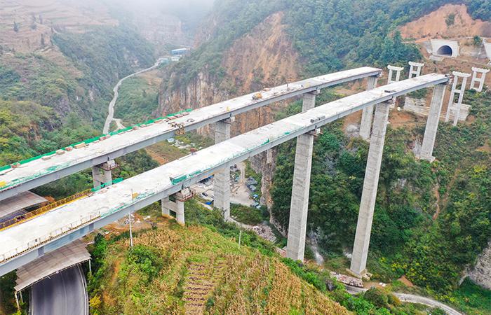 【工程概況】鎮果公路三分部五谷大橋左幅全長(cháng)345米,孔跨布置為:50+60+2×70+3×28.5米鋼混組合梁+預應力混凝土T梁,先簡(jiǎn)支后連續結構;右幅全長(cháng)364米,孔跨布置為:60+3×70+3×28.5米鋼混組合梁+預應力混凝土T梁,先簡(jiǎn)支后連續結構,最大墩高103米,為鎮果公路項目重點(diǎn)控制性工程。
