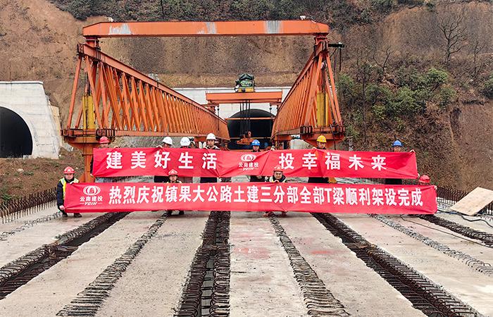 12月31日,由公司市政路橋一部負(fù)責(zé)施工的鎮(zhèn)果公路三分部項(xiàng)目五谷大橋完成最后一片T梁架設(shè),標(biāo)志著該橋主體工程順利完工,為全線貫通提供了關(guān)鍵支撐。