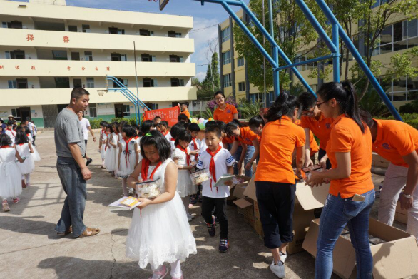 給小朋友們發(fā)蛋糕及學(xué)習用品