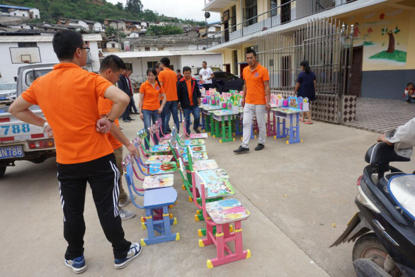 “我要米奇!我要熊二!我要……”在玉屏村幼兒園,孩子們看到五顏六色的小桌椅都禁不住七嘴八舌地開(kāi)始挑選起自己喜愛(ài)的圖案。玉屏村小學(xué)里孩子們在校長(cháng)組織下有序地從橙色衣服叔叔和阿姨手中的小蛋糕和學(xué)習用品,嘴里不停地說(shuō)著(zhù)“謝謝”,少先隊員們則不時(shí)地敬禮表示謝意。漢邑村小學(xué)孩子們用精彩的鼓樂(lè )表演來(lái)表達對彌玉高速象山試驗段送來(lái)學(xué)習用品的謝意。最后一站曲陀關(guān)小學(xué),當“橙色小分隊”載著(zhù)滿(mǎn)滿(mǎn)一車(chē)的盆景到達時(shí),孩子們已經(jīng)穿著(zhù)整齊的服裝在列隊歡迎,讓人感動(dòng)的是,車(chē)才停穩,高年級的同學(xué)們立即七手八腳的幫忙把盆栽搬下車(chē),孩子們一聲聲的驚嘆聲以及臉上開(kāi)心的神情讓大家感到無(wú)比的欣慰。