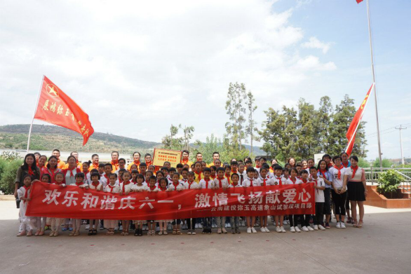 技術(shù)支持: 方森科技    6月2日,公司路橋四部為駐地周邊的漢邑村小學(xué)、玉屏村小學(xué)及附屬幼兒園、曲陀關(guān)小學(xué)這四所學(xué)校的孩子們送祝福。這天一大早,彌玉高速展宏青年突擊隊“橙色小分隊”的隊員們就開(kāi)始忙碌起來(lái)了,將學(xué)習用品、小蛋糕及盆景等裝車(chē)送到孩子們的手中。
