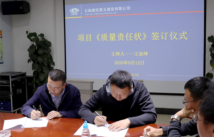 直管部經(jīng)理王加坤分別與與昆明西城財富中心項目、五華人民醫院項目、祿勸中醫院項目項目經(jīng)理簽訂項目《質(zhì)量責任狀》。他強調,要緊緊圍集團“乘勢而上,大戰120天,確保年度目標任務(wù)超額完成”的具體要求,切實(shí)把質(zhì)量安全放在第一位。