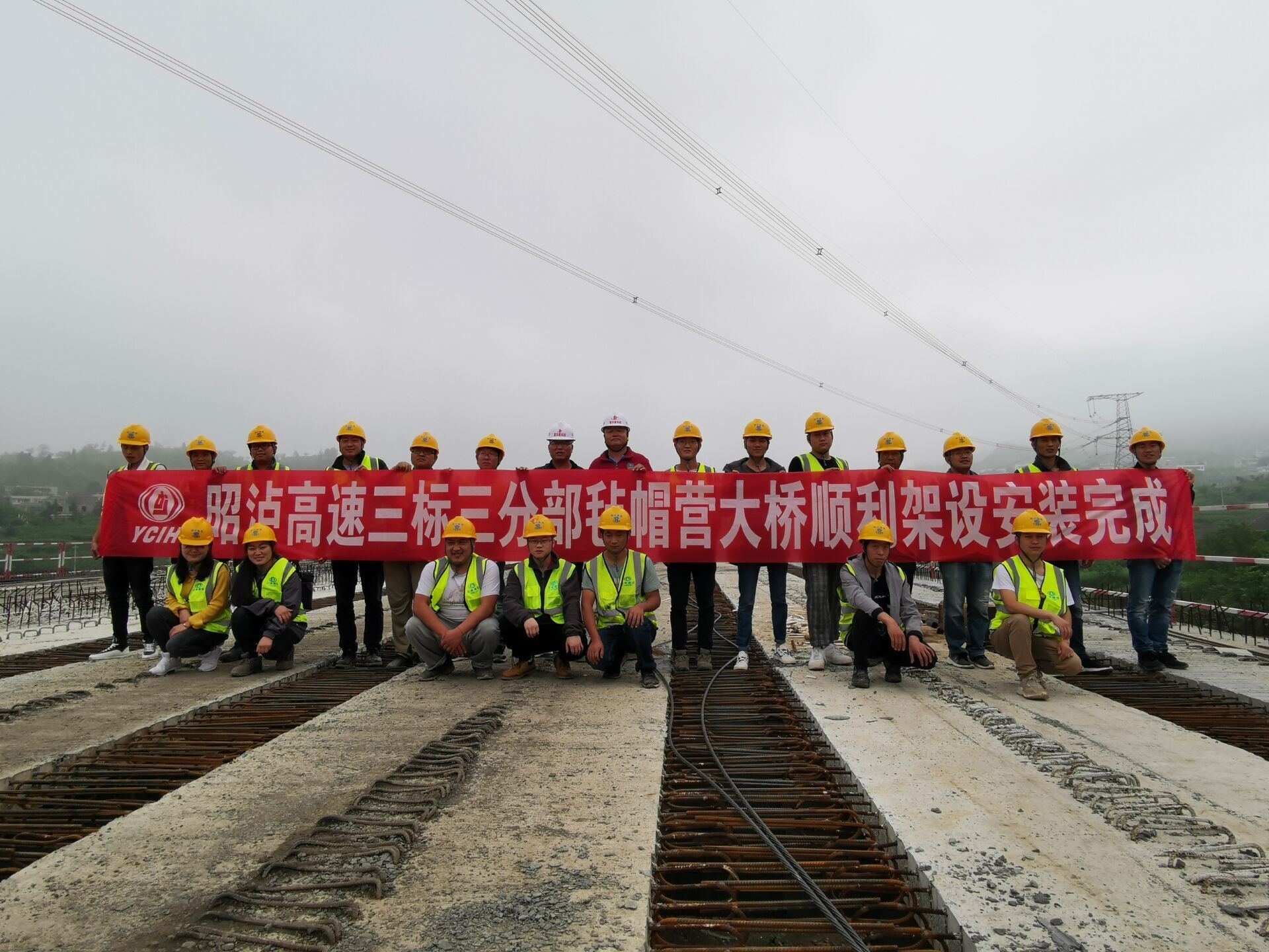 6月24日,氈帽營(yíng)大橋110片預制T梁全部順利架設吊裝完成,標志著(zhù)昭瀘高速公路三標三分部首件大橋預制T梁在保證安全,保證質(zhì)量的前提下勝利架設安裝完成。 氈帽營(yíng)大橋起訖樁號為2K70+002.96——2K70+339.04,全橋長(cháng)336.08米,為110片(4*30+3*40+4*30),先簡(jiǎn)支后連續預應力砼T梁。 為保證T梁順利架設吊裝完成,公司領(lǐng)導高度重視橋梁施...