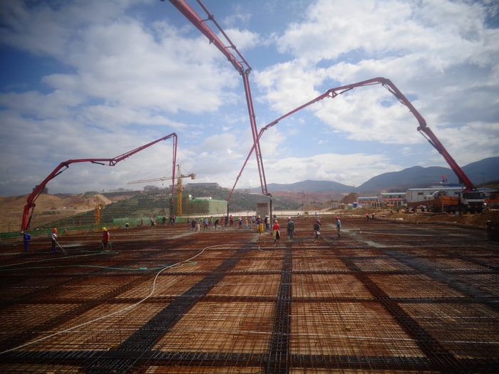 2016年6月25日,大理海東中學(xué)風(fēng)雨操場(chǎng)頂板高支?;炷另樌麧仓瓿?。 早上6:00,由第九直管項目部負責施工的大理海東山地新城中學(xué)校區建設項目部風(fēng)雨操場(chǎng)3臺汽車(chē)泵已經(jīng)到位、混凝土罐車(chē)已經(jīng)到位、4名負責風(fēng)雨操場(chǎng)的值班工長(cháng)已經(jīng)到位、實(shí)驗員已經(jīng)到位、混凝土班組36名操作人員已經(jīng)到位、鋼筋班組4名值班人員已經(jīng)到位、5名架子工已...