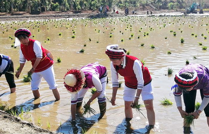 大理三線(xiàn)劃定項目栽插水稻秧苗