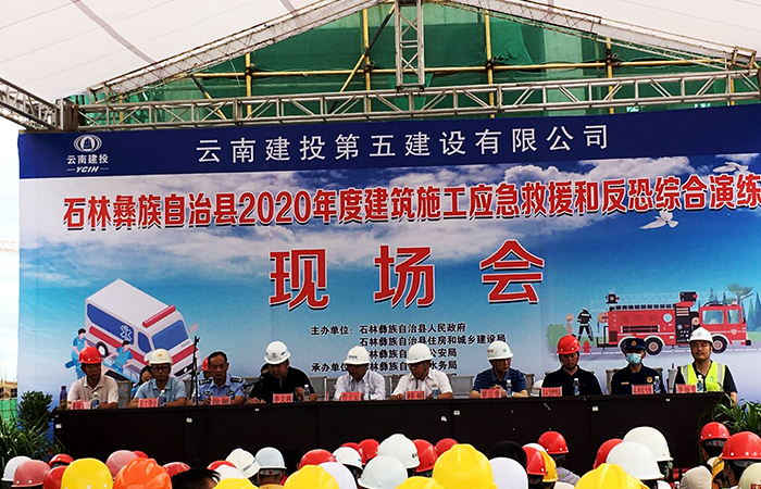 7月16日下午,由石林彝族自治縣人民政府、住房和城鄉建設局、公安局主辦,公司第六直管部承辦的石林縣2020年度建筑施工應急救援和反恐綜合演練在石林縣魚(yú)龍水庫工程天生橋村移民安置房建設工程第三標項目舉行。昆明市建設工程質(zhì)量安全監督管理總站房建處處長(cháng)覃廷貴,石林縣主管部門(mén)領(lǐng)導出席活動(dòng)。石林縣15家施工企業(yè)代表,48個(gè)在建項目甲方代表、項目經(jīng)理、監理、專(zhuān)職安全員等共計200余人參...
